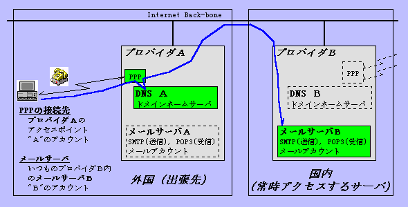 ここにAPの無いプロバイダBのメールアカウントにアクセスしたい」