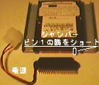 | スレーブとするためには 変換コネクタにジャンパが必要 MK4309MATの場合 ピン1の右隣の上下ピンを短絡 |